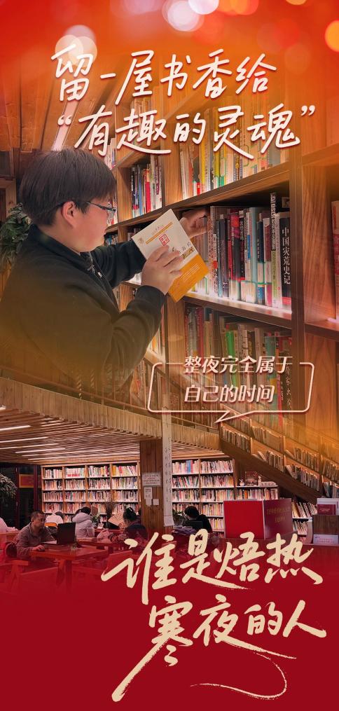 短短一個月,程澤鑫結(jié)識了很多“有趣的靈魂”——有一位白天在廚房“顛勺”的“書友”,嫌工作場所嘈雜,靜不下心,隔三岔五就來這里“泡”著,一讀就是一宿。有一回,程澤鑫見他讀得出神,水杯見底,便過去幫他續(xù)熱水,兩人就這么熟識了。