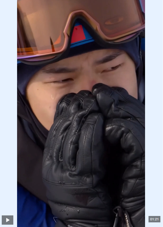 完賽后,蘇翊鳴難掩熱淚?!皬谋本┒瑠W會后的休息,再回到世界最高水平,對我來說是一個艱難的過程?!彼哪觊g,蘇翊鳴經歷了傷病、挫折、低谷,他的腳踝曾一度腫脹到穿不上雪鞋,甚至不能行走,繼續(xù)訓練和比賽全靠止疼藥支撐。但在一度幾乎崩潰,幾乎要放棄的時候,他堅持下來了,就在他22歲生日當天,蘇翊鳴再次站上奧林匹克之巔,在國際賽場展現(xiàn)出了中國冰雪人的魅力。