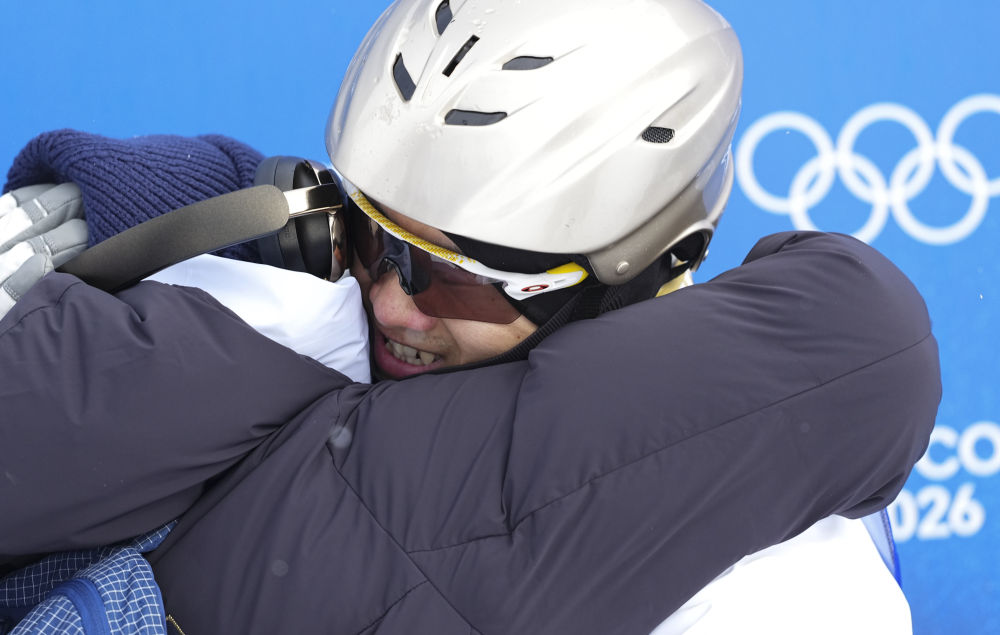 當(dāng)王心迪在米蘭冬奧會(huì)自由式滑雪男子空中技巧決賽中穩(wěn)穩(wěn)落地,滑到等分區(qū),妻子徐夢(mèng)桃已從場(chǎng)邊飛奔而來,與他緊緊相擁。