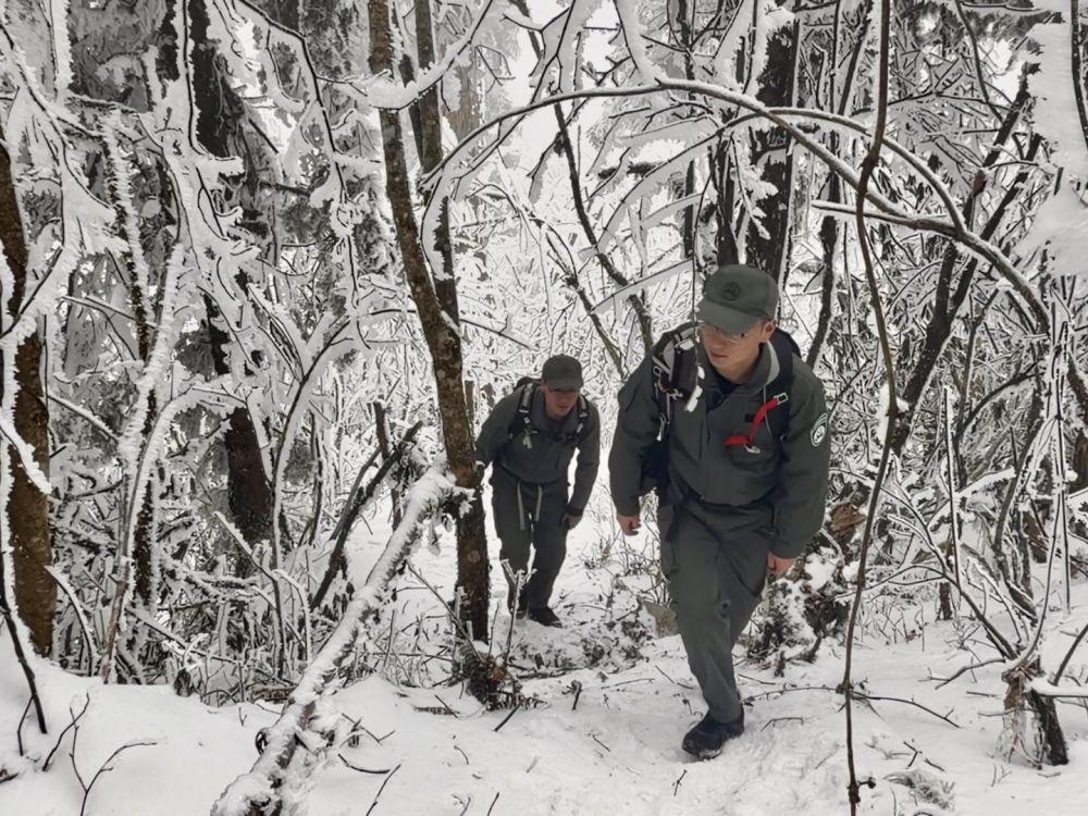 雖已立春,大熊貓國(guó)家公園滎經(jīng)片區(qū)依然大雪紛飛。記者從四川雅安滎經(jīng)縣城出發(fā)前往大相嶺,山下天還晴著,車(chē)拐進(jìn)山路,霧就從溝谷里漫上來(lái);再往上,細(xì)雨打著樹(shù)枝上的冰棱,把山路潤(rùn)得發(fā)亮。到了大相嶺自然保護(hù)區(qū)管護(hù)中心,車(chē)窗外已是白茫茫一片,氣溫低至零下。