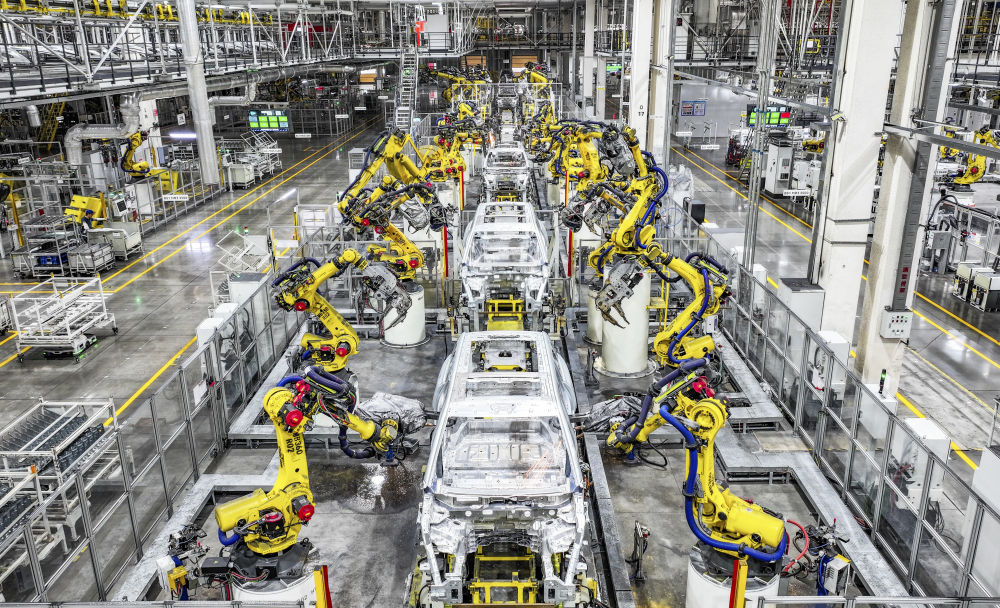 在位于重慶市兩江新區(qū)的賽力斯汽車超級(jí)工廠拍攝的自動(dòng)化生產(chǎn)作業(yè)現(xiàn)場(chǎng)(2025年9月19日攝)。