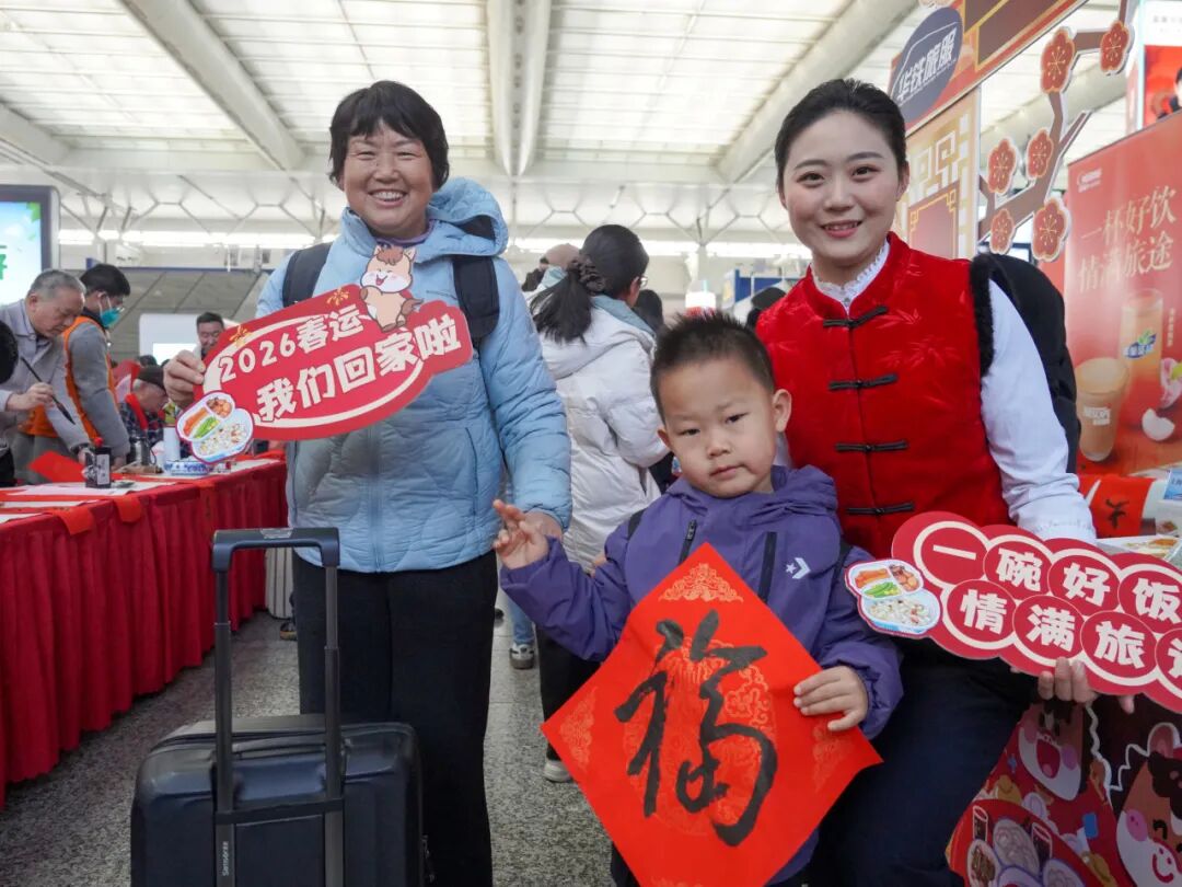 在合肥南站候車大廳,處處洋溢著濃濃的年味。