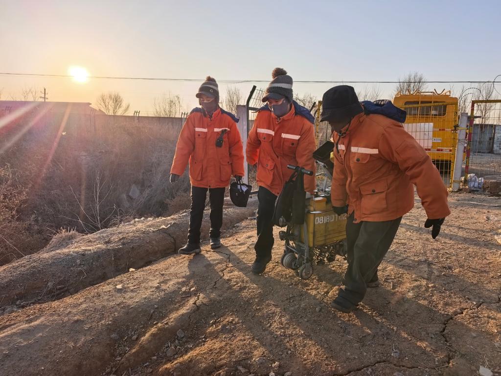 隊員們抵達作業(yè)地點,抬著探傷儀走向鐵軌。新華社記者 郭雅茹 攝