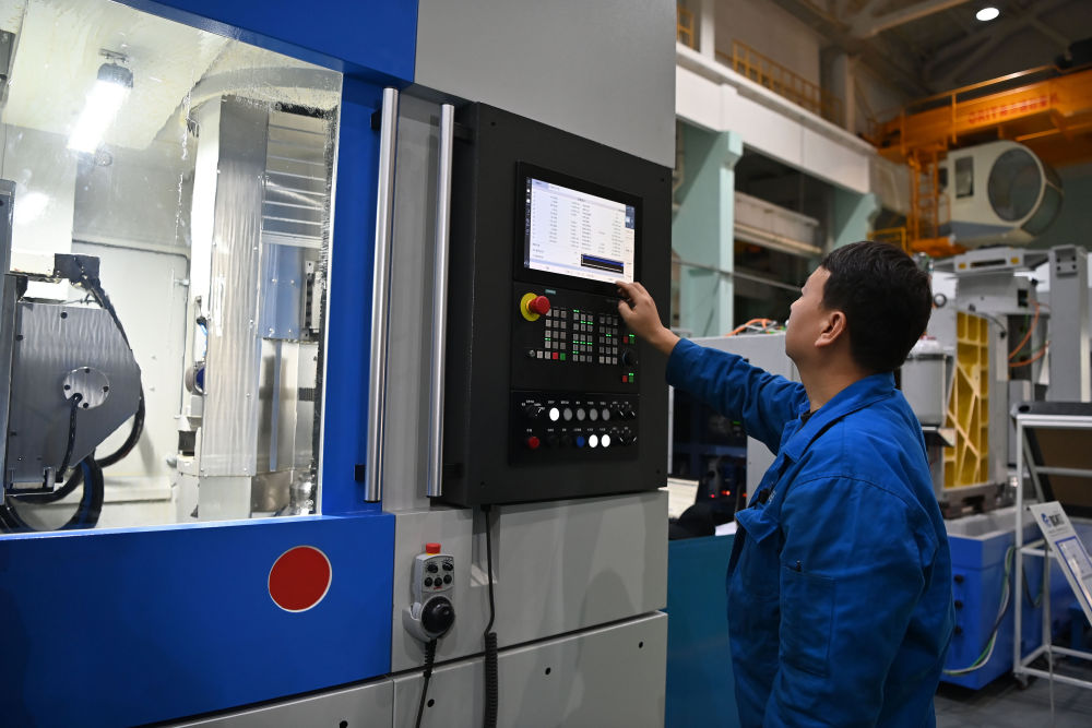2025年10月28日,在秦川機(jī)床工具集團(tuán)股份公司總裝車間,工作人員在調(diào)試機(jī)床。新華社記者 肖瀟 攝