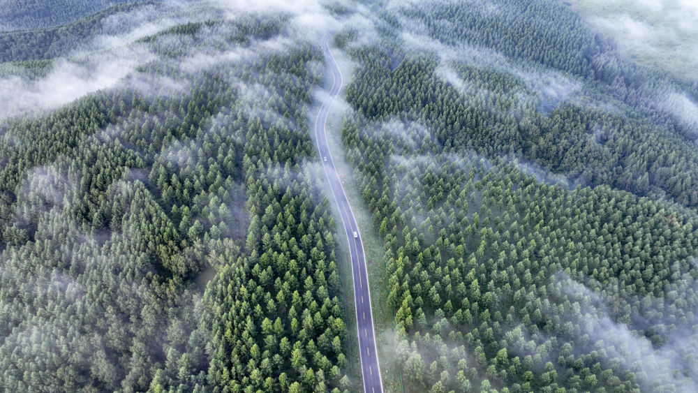 2024年7月26日拍攝的塞罕壩國(guó)家級(jí)自然保護(hù)區(qū)景色(無人機(jī)照片)。夏日清晨,位于河北省承德市的塞罕壩國(guó)家級(jí)自然保護(hù)區(qū)滿目青翠,浩瀚林海壯美如畫。新華社發(fā)(王立群 攝)