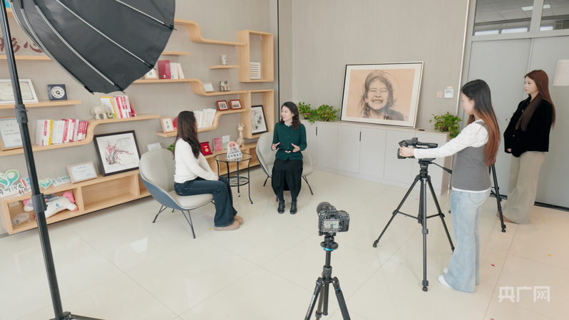 萬柯彤(左二)在錄制視頻中(央廣網(wǎng)記者 周思楊 攝)