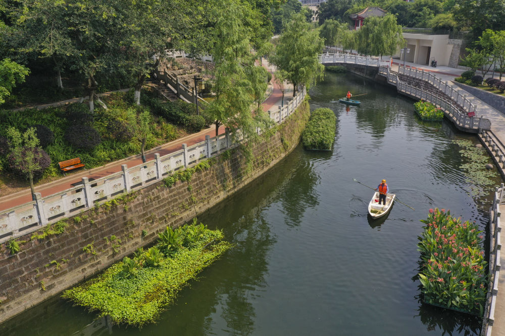 圖為工作人員在重慶永川臨江河紅旗河段清漂(資料照片)。新華社記者 王全超 攝
