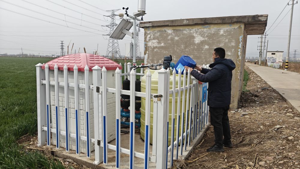 3月18日,在河南省鶴壁市淇縣,當(dāng)?shù)剞r(nóng)民正在利用水肥一體化設(shè)備為麥田施肥。(王家勝 攝)