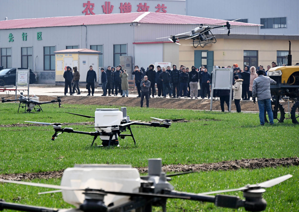 3月9日,在山東省肥城市安駕莊鎮(zhèn)洼里無人智慧農(nóng)場內(nèi),由山東農(nóng)業(yè)大學(xué)團(tuán)隊(duì)自主研制的智能農(nóng)機(jī)裝備在田間穿梭,助力春耕生產(chǎn)。新華社記者 朱崢 攝