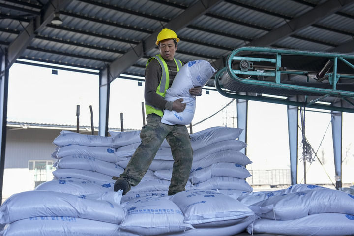 眼下,東北進入備耕關鍵期。在產(chǎn)糧大縣吉林省農(nóng)安縣,吉林乾溢農(nóng)業(yè)發(fā)展專業(yè)合作社聯(lián)合社的化肥加工廠內(nèi),工人們正將一袋袋化肥裝車,運往各村農(nóng)民合作社。