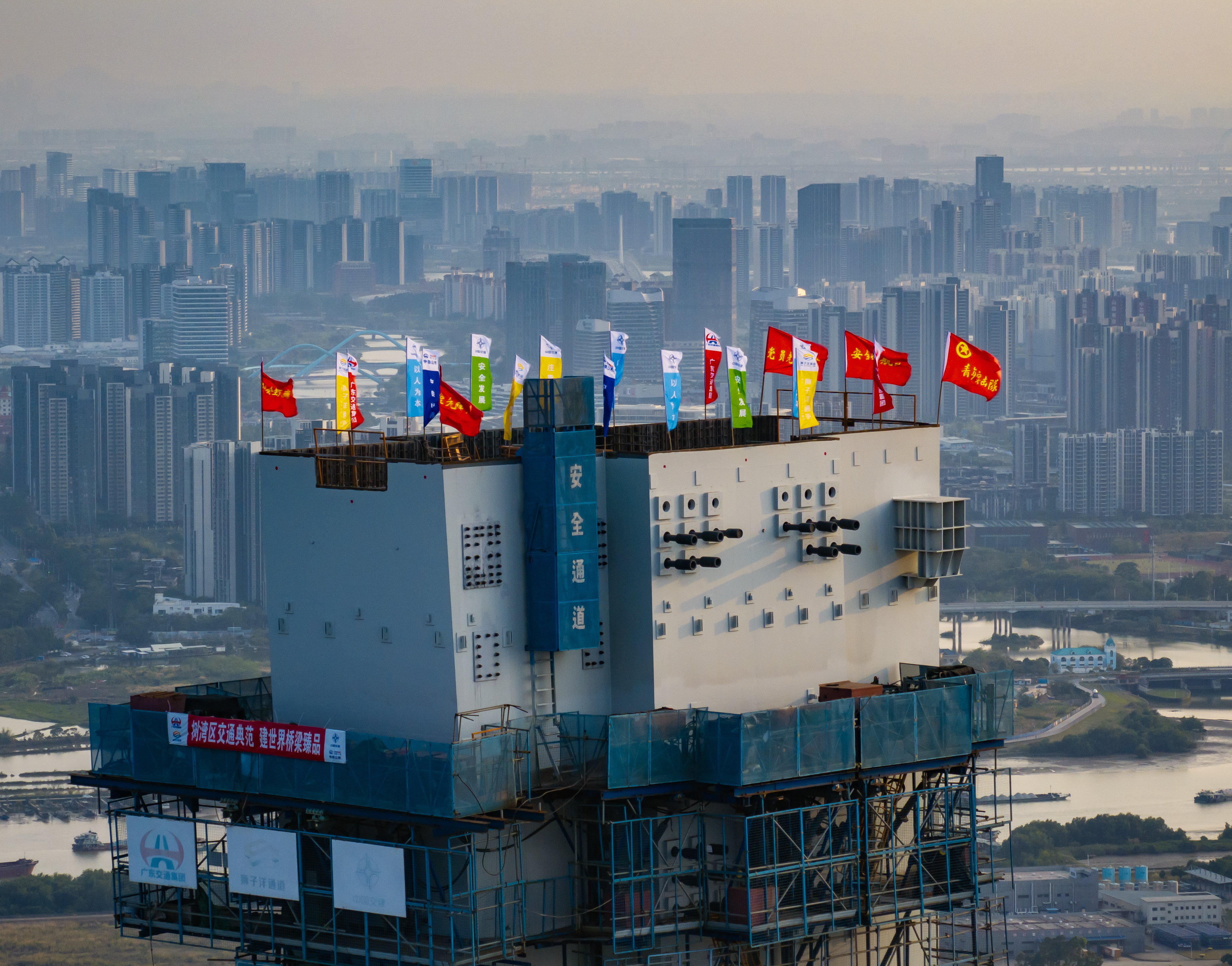 3月26日上午11時(shí),粵港澳大灣區(qū)核心樞紐工程獅子洋通道迎來重大進(jìn)展,其關(guān)鍵控制性工程——獅子洋大橋東、西主塔完成封頂,以342米的凌空高度,一舉成為珠江口第一高橋塔、世界最高雙層懸索橋主塔。