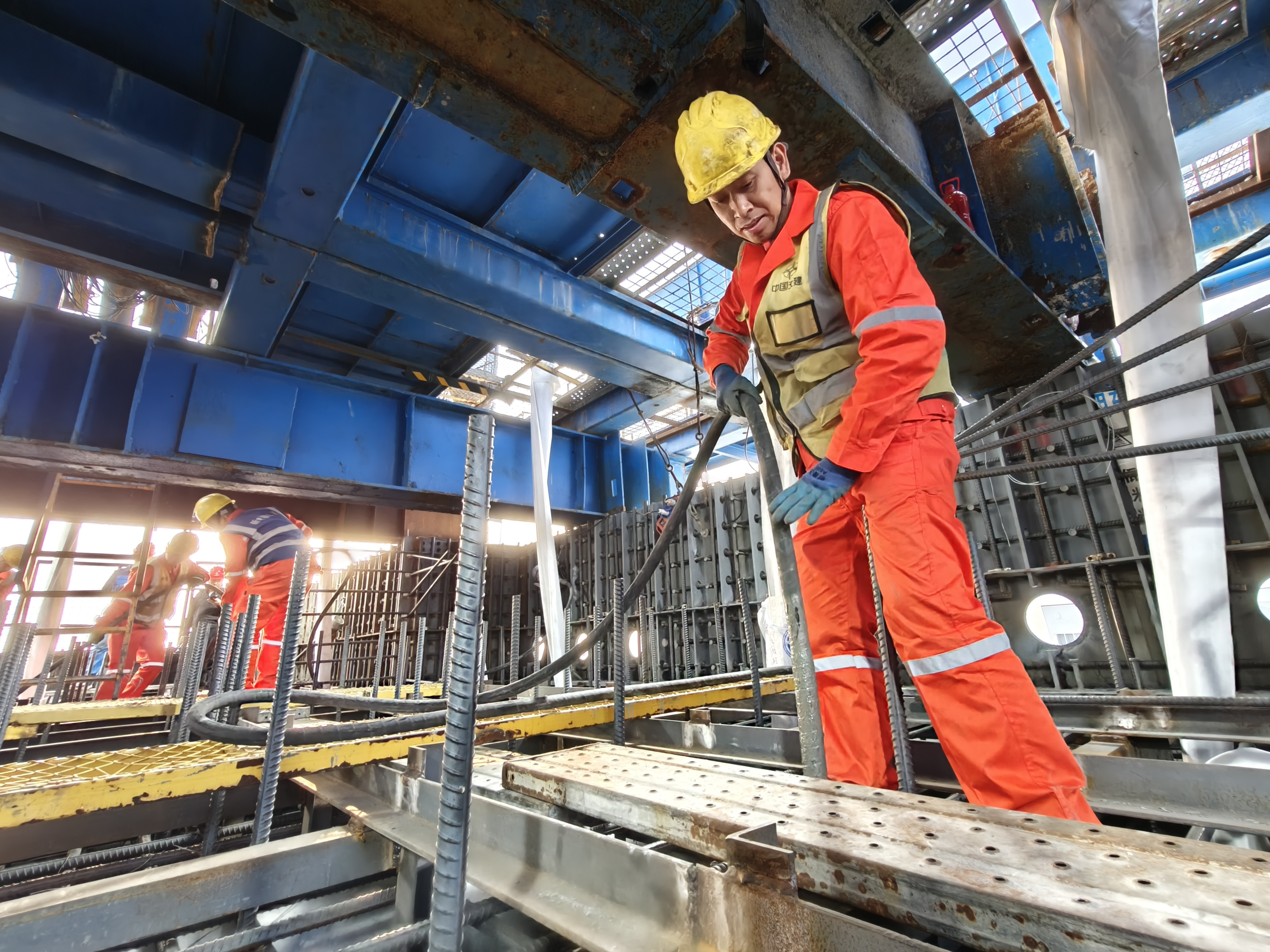 獅子洋大橋主塔高342米,相當(dāng)于110層樓高,單幅塔肢由62個(gè)鋼殼節(jié)段精準(zhǔn)拼裝。面對(duì)毫米級(jí)精度控制、超高施工等挑戰(zhàn),中交二航局項(xiàng)目團(tuán)隊(duì)創(chuàng)新攻克多重難題——