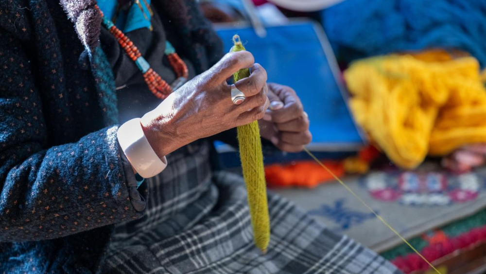 3月25日,西藏日喀則市崗巴縣直克鄉(xiāng)乃村順心合作社員工在捻線。新華網(wǎng) 旦增努布 攝