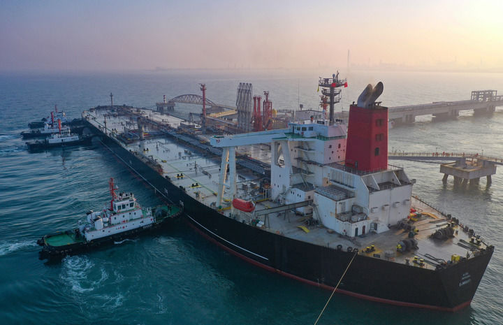 2025年12月18日,一艘裝載著17.9萬噸石化原輔料的船舶泊入國投洋浦油儲碼頭30萬噸級原油泊位(無人機(jī)照片)。這是海南自由貿(mào)易港正式啟動(dòng)全島封關(guān)后洋浦港口岸第一批通關(guān)的“零關(guān)稅”石化原輔料。