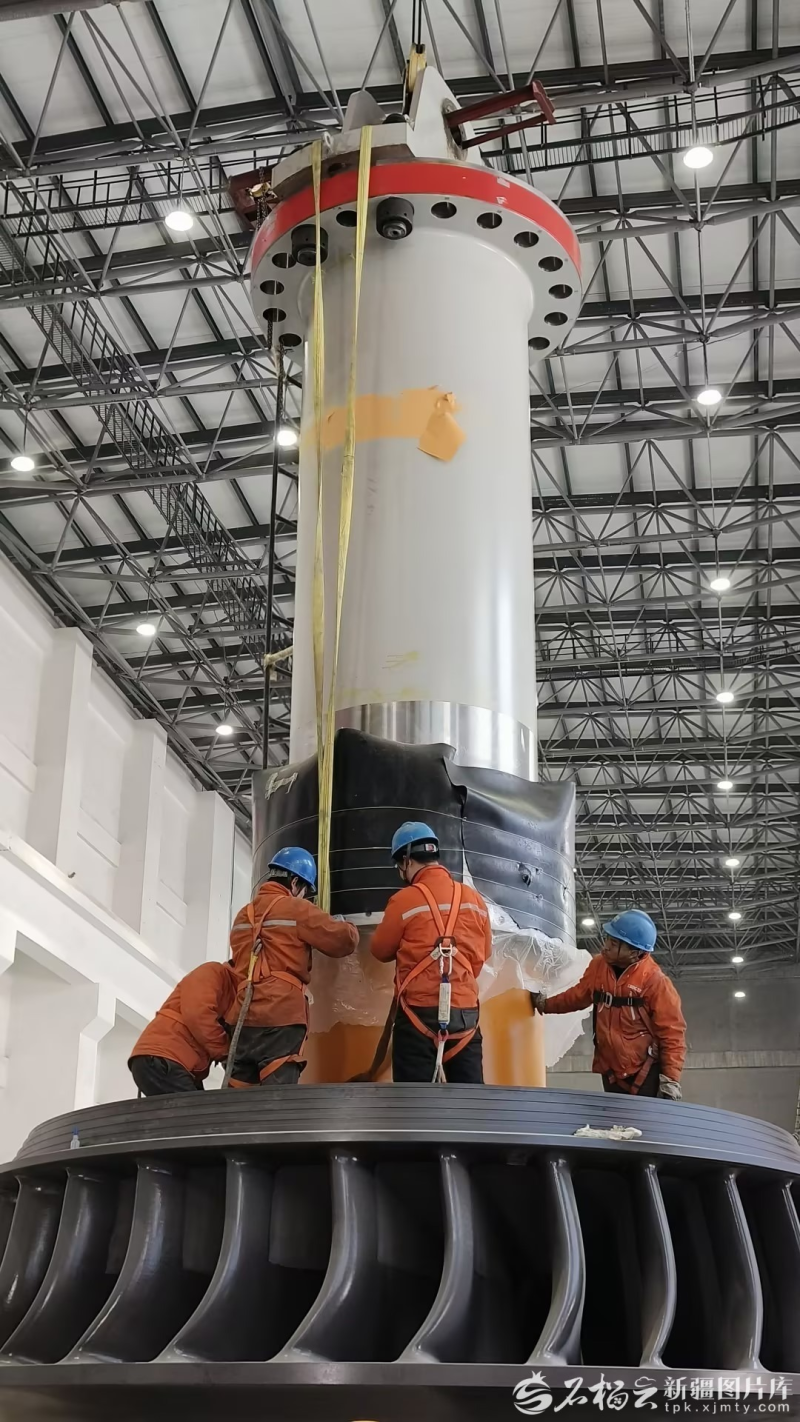 新疆大石峽水利樞紐工程發(fā)電廠房內(nèi),工作人員正在進(jìn)行3號機(jī)轉(zhuǎn)輪浮動環(huán)安裝。潘生明攝