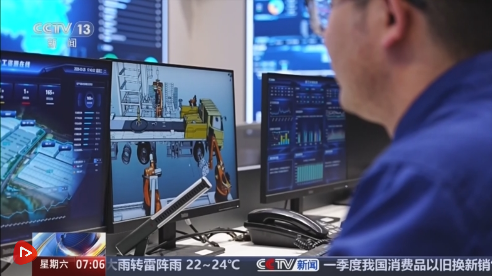在這個(gè)工廠里,從工廠建設(shè)、研發(fā)設(shè)計(jì)到生產(chǎn)作業(yè)等5大環(huán)節(jié)38個(gè)場(chǎng)景中,有25個(gè)場(chǎng)景都運(yùn)用了AI技術(shù),涉及35個(gè)智能模型。在這個(gè)智能制造研發(fā)中心,研發(fā)人員正利用數(shù)字孿生遠(yuǎn)程監(jiān)控生產(chǎn)進(jìn)度。