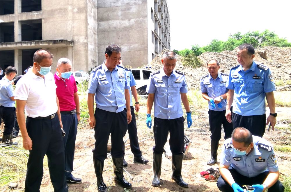 張學(xué)杰(前左三)指導(dǎo)現(xiàn)場(chǎng)勘查工作(2021年8月攝)。新華社發(fā)