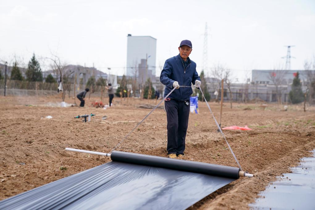 地膜鋪好了,高東元跪在菜畦邊,小心翼翼地用土把邊緣壓實(shí)??粗矍暗牟说兀邧|元笑著說:“清明過后,菜椒、茄子就都可以種了?!彼难凵窭?,盛滿了對歲稔年豐的期盼。