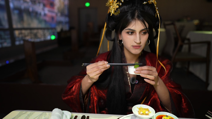 2026年2月12日,一名外國(guó)游客在上海外灘一家餐廳品嘗中國(guó)美食。新華社記者 李海偉 攝