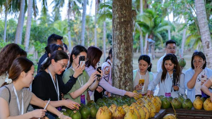 “椰子樹渾身是寶,椰肉鮮嫩、椰汁爽口、椰干當(dāng)梁、椰殼可雕、椰根入藥?!币铀k公室主任賈永立說。對(duì)海外華媒人而言,這里是一個(gè)“可體驗(yàn)、可傳播、可共情”的海南故事。澳大利亞澳華電視傳媒董事長任傳功感嘆,園區(qū)匯集全球諸多椰子品種,既是活態(tài)植物基因庫,也是立體的熱帶植物百科全書。游客不僅能看、能學(xué),還能通過椰子制品、椰子美食、椰雕工藝,真切感受椰子如何融入文昌人的衣食住行。
