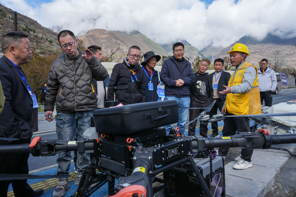 3月31日,在四川茂縣“茂縣李”標(biāo)準(zhǔn)化種植基地,2026“茂縣李”產(chǎn)業(yè)發(fā)展大會(huì)參會(huì)專家和客商了解無人機(jī)植保情況。新華社記者王曦 攝
