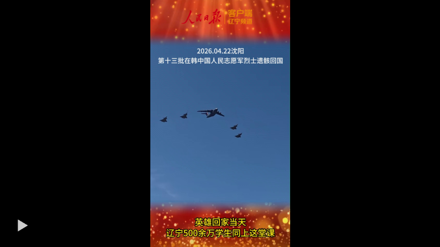4月22日,第十三批在韓中國人民志愿軍烈士遺骸迎回儀式在沈陽舉行。當(dāng)天下午,一堂《英雄,永不謝幕》大思政課特別節(jié)目如期舉行,志愿軍老戰(zhàn)士、烈士家屬等現(xiàn)場講述英雄故事,遼寧全省500余萬大中小學(xué)生一同聆聽、學(xué)習(xí)、傳承……