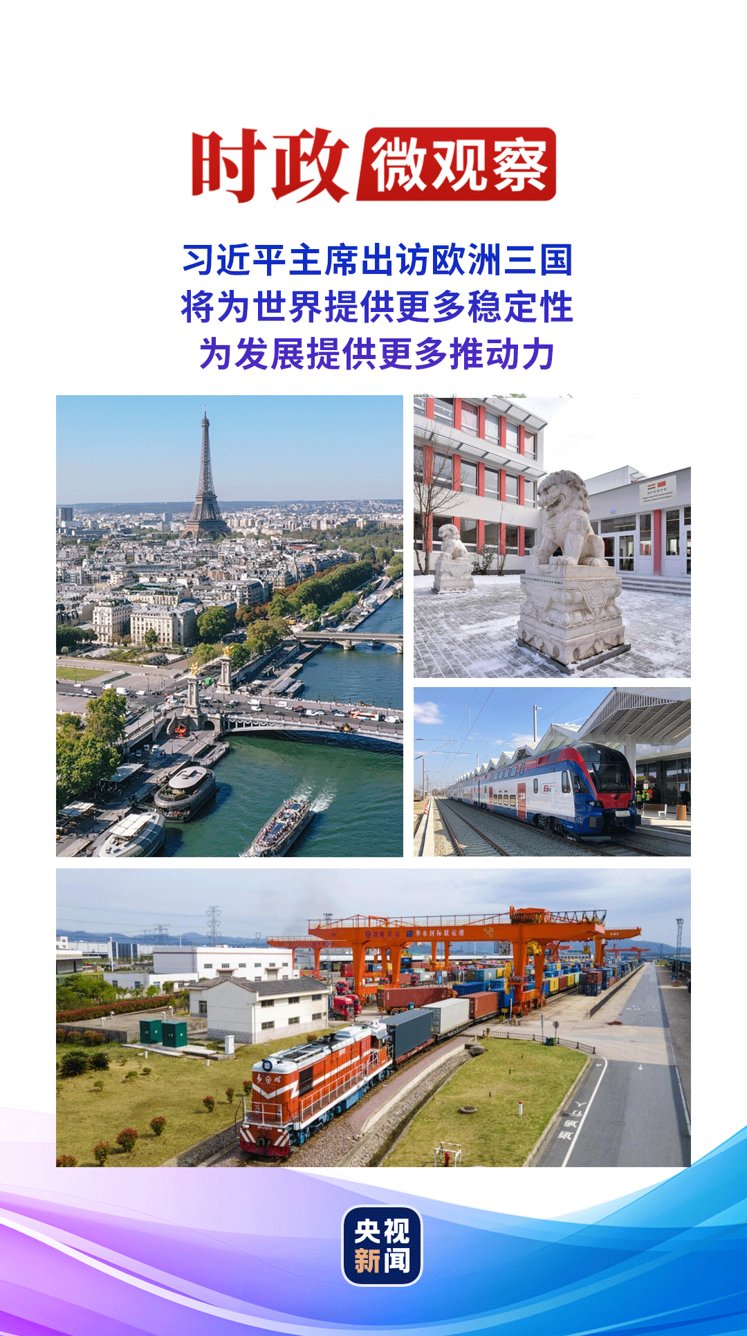 這是習(xí)近平主席今年首次出訪,也是習(xí)近平主席第三次對(duì)法國進(jìn)行國事訪問、第二次對(duì)塞爾維亞進(jìn)行國事訪問、首次對(duì)匈牙利進(jìn)行國事訪問,對(duì)推動(dòng)中國同法國、塞爾維亞、匈牙利以及中歐關(guān)系整體發(fā)展具有重要意義,也將為世界和平發(fā)展注入新動(dòng)能。