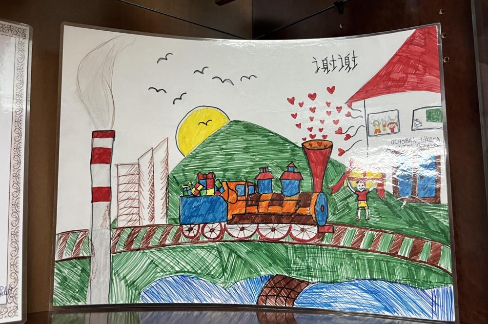 在斯梅戴雷沃鋼廠辦公樓入口處,擺放著一摞廠辦期刊。每一期封底都是一幅鋼廠子弟或當?shù)匦W生的畫作。在孩子們眼中,鋼廠色彩斑斕:郁郁蔥蔥的山腳下,色彩鮮亮的火車頭在廠區(qū)內(nèi)穿梭,噴出“小愛心”;孩子們手持氣球,站在鋼廠援建的學校前,腳下開滿鮮花;塞中兩國員工肩并肩站在一起,兩國國旗和兩種文字的“謝謝”排列在一起。
