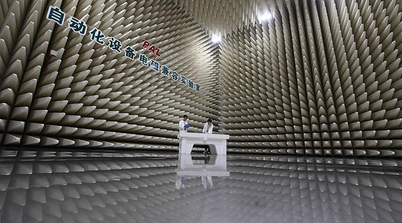 △2023年7月7日,在南瑞集團有限公司自動化設(shè)備電磁兼容實驗室,科研人員在進(jìn)行輻射發(fā)射實驗準(zhǔn)備工作。