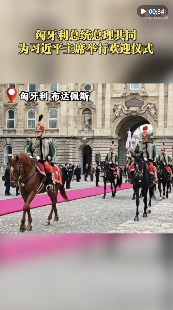 當?shù)貢r間9日上午,匈牙利總統(tǒng)舒尤克、總理歐爾班在布達王宮內(nèi)廷為習近平主席舉行歡迎儀式。