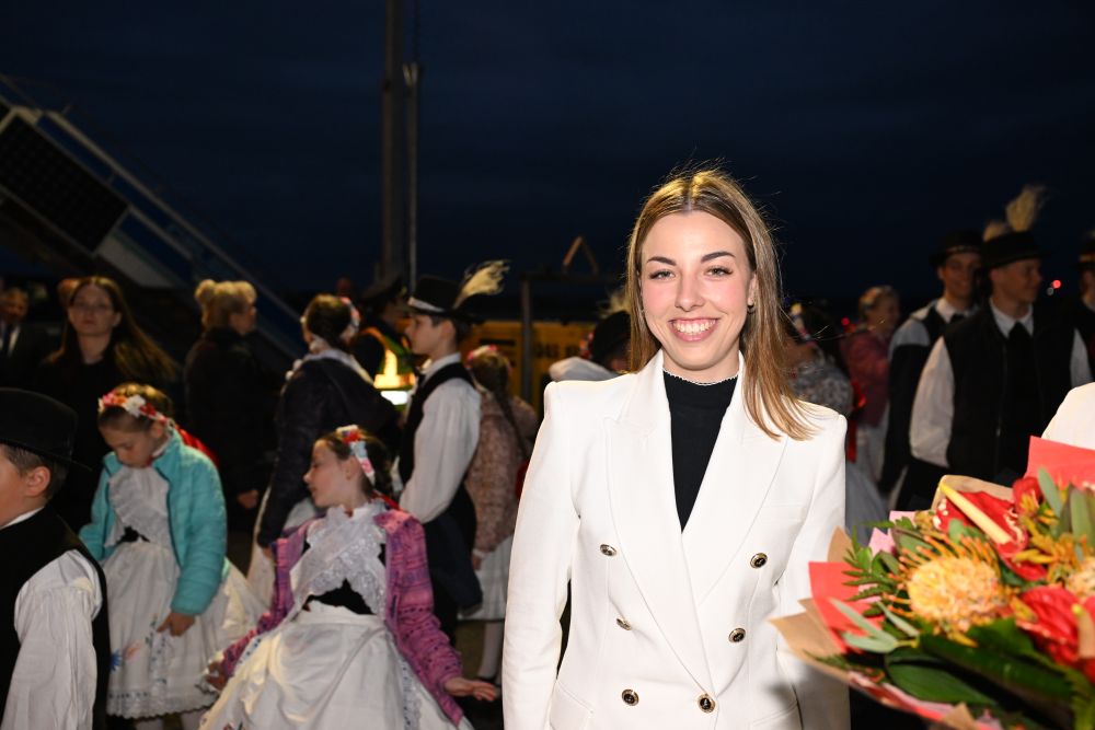 當(dāng)?shù)貢r間5月8日晚,在匈牙利布達(dá)佩斯國際機(jī)場歡迎隊伍中的匈牙利姑娘歐拉·塔瑪拉。新華社記者謝環(huán)馳攝
