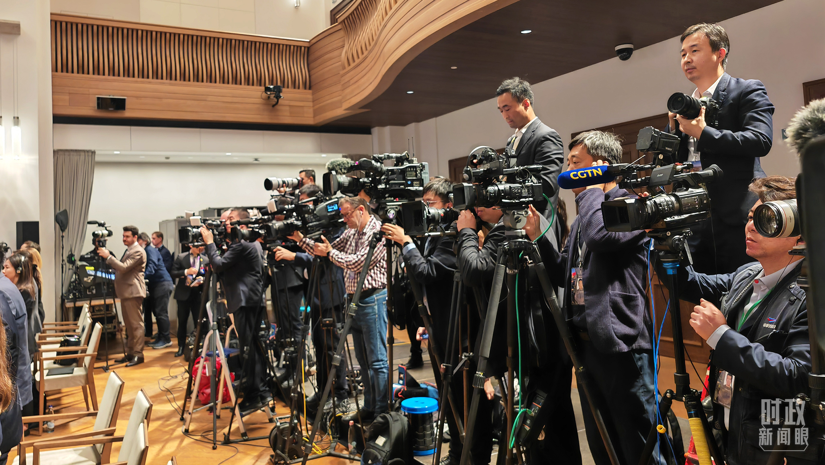 習(xí)主席同歐爾班總理共同會(huì)見(jiàn)記者,現(xiàn)場(chǎng)記者云集。(總臺(tái)央廣記者馬喆拍攝)