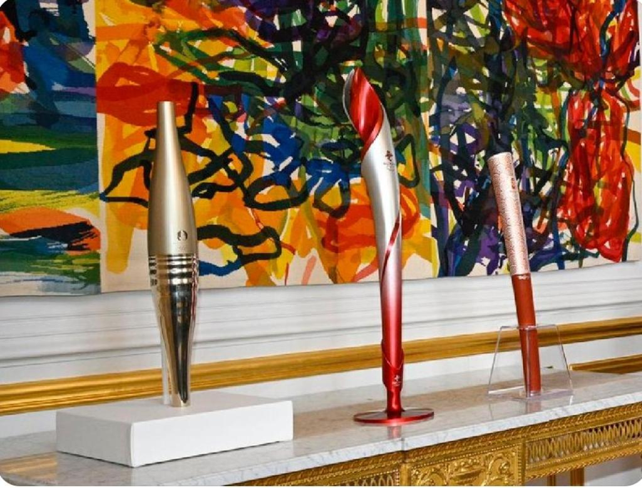 在法國(guó)愛麗舍宮一層肖像廳,三支奧運(yùn)火炬并排而立,格外引人注目。這是中法兩國(guó)元首夫婦互贈(zèng)禮品之一。