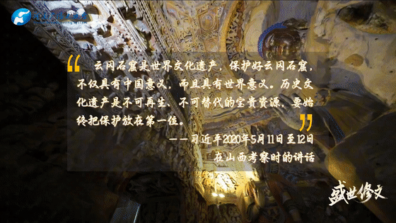 云岡石窟是世界文化遺產(chǎn),保護(hù)好云岡石窟,不僅具有中國(guó)意義,而且具有世界意義。歷史文化遺產(chǎn)是不可再生、不可替代的寶貴資源,要始終把保護(hù)放在第一位。