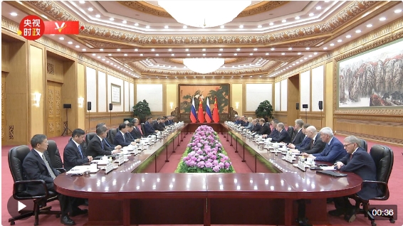 5月16日上午,國家主席習(xí)近平在北京人民大會堂同來華進行國事訪問的俄羅斯總統(tǒng)普京舉行大范圍會談。