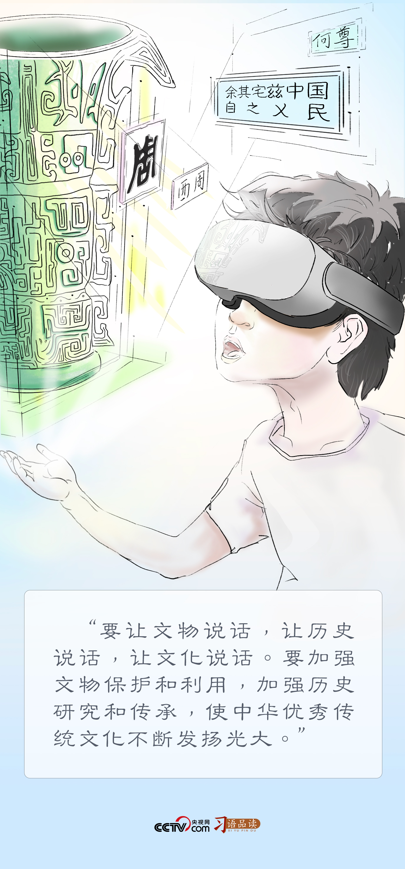 “讓收藏在博物館里的文物、陳列在廣闊大地上的遺產(chǎn)、書寫在古籍里的文字都活起來??倳浻靡粋€(gè)“活”字,道出使中華優(yōu)秀傳統(tǒng)文化不斷發(fā)揚(yáng)光大的方向和目標(biāo)。