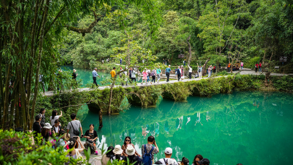 初夏時(shí)節(jié),貴州省黔南布依族苗族自治州荔波縣小七孔景區(qū)綠意盎然、風(fēng)光秀美,吸引眾多游客前來(lái)觀光游玩。新華社記者 陶亮 攝