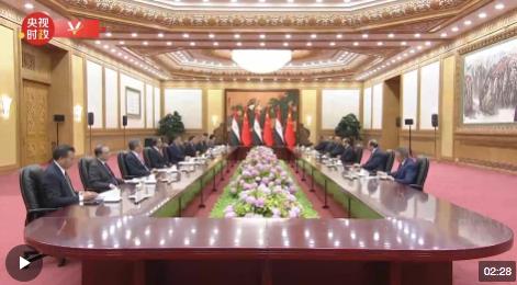 5月29日下午,國家主席習(xí)近平在北京人民大會(huì)堂同來華出席中國—阿拉伯國家合作論壇第十屆部長級會(huì)議開幕式并進(jìn)行國事訪問的埃及總統(tǒng)塞西舉行會(huì)談。