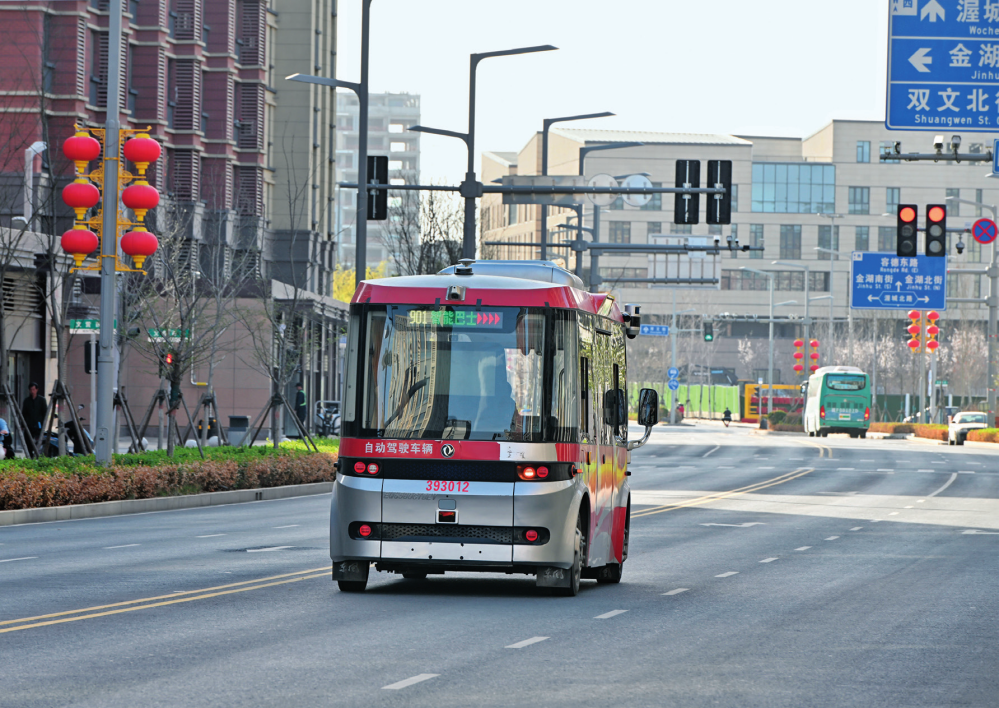 智能網聯巴士在雄安新區(qū)容東片區(qū)道路上行駛(2024 年 3 月 29 日攝)牟宇攝