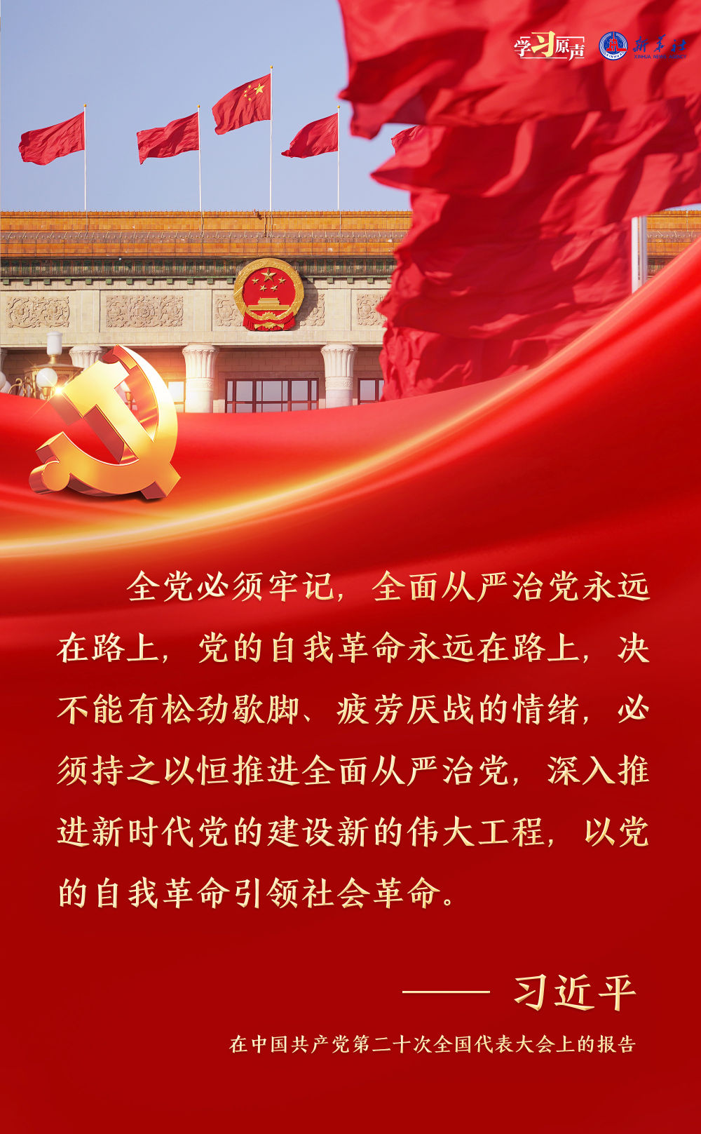 習近平總書記強調(diào),面對新征程上的新挑戰(zhàn)新考驗,我們必須高度警省,永遠保持趕考的清醒和謹慎,馳而不息推進全面從嚴治黨,使百年大黨在自我革命中不斷煥發(fā)蓬勃生機,始終成為中國人民最可靠、最堅強的主心骨。