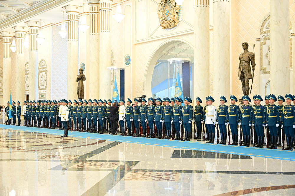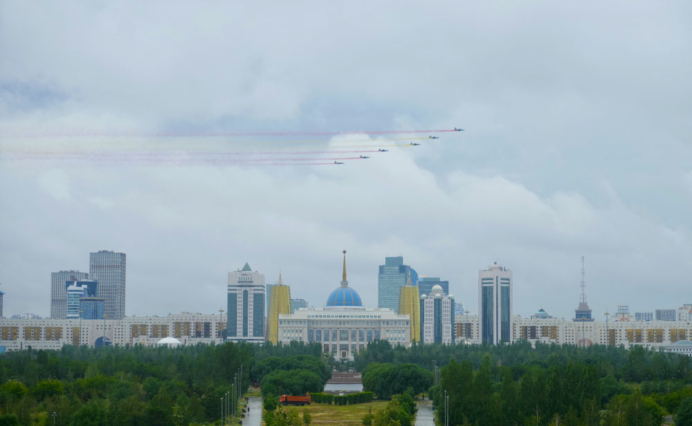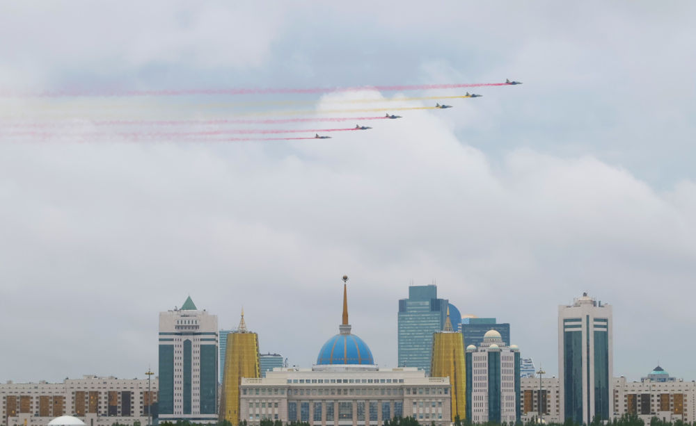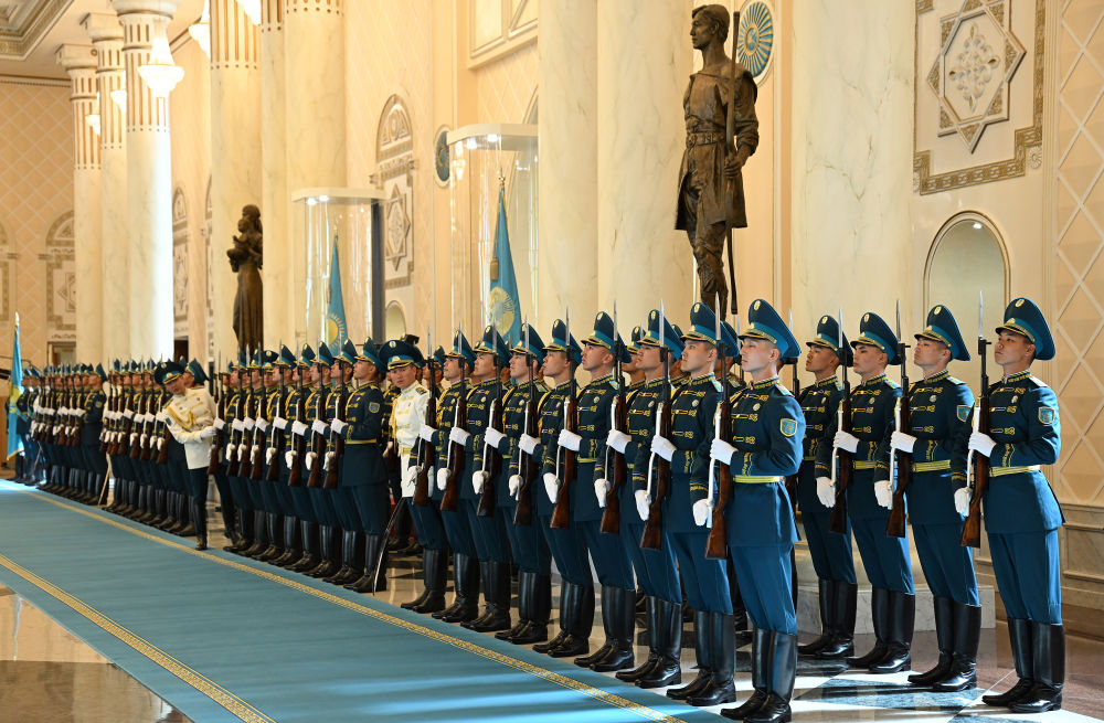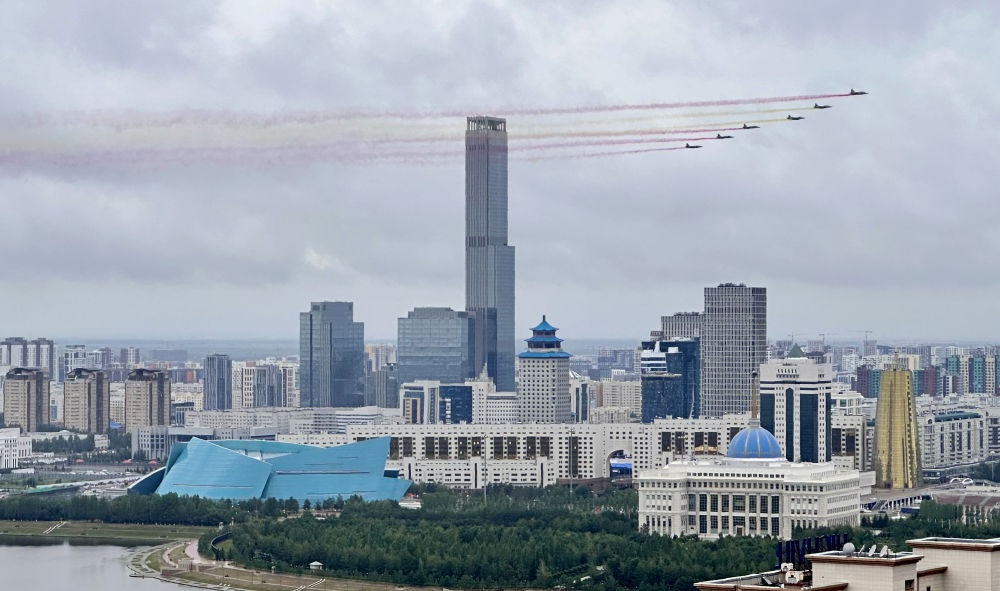 當?shù)貢r間3日,國家主席習近平在阿斯塔納出席哈薩克斯坦總統(tǒng)托卡耶夫舉行的歡迎儀式。