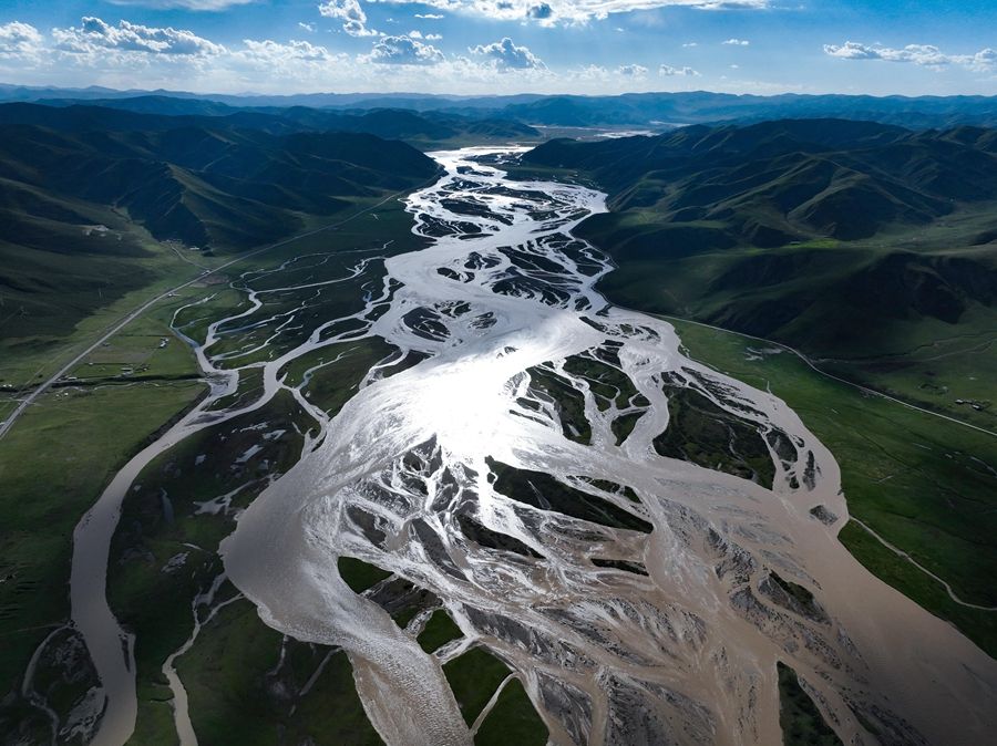 在青海省果洛藏族自治州達日縣境內(nèi)拍攝的黃河(2024年7月31日攝,無人機照片)。新華社記者 張龍 攝