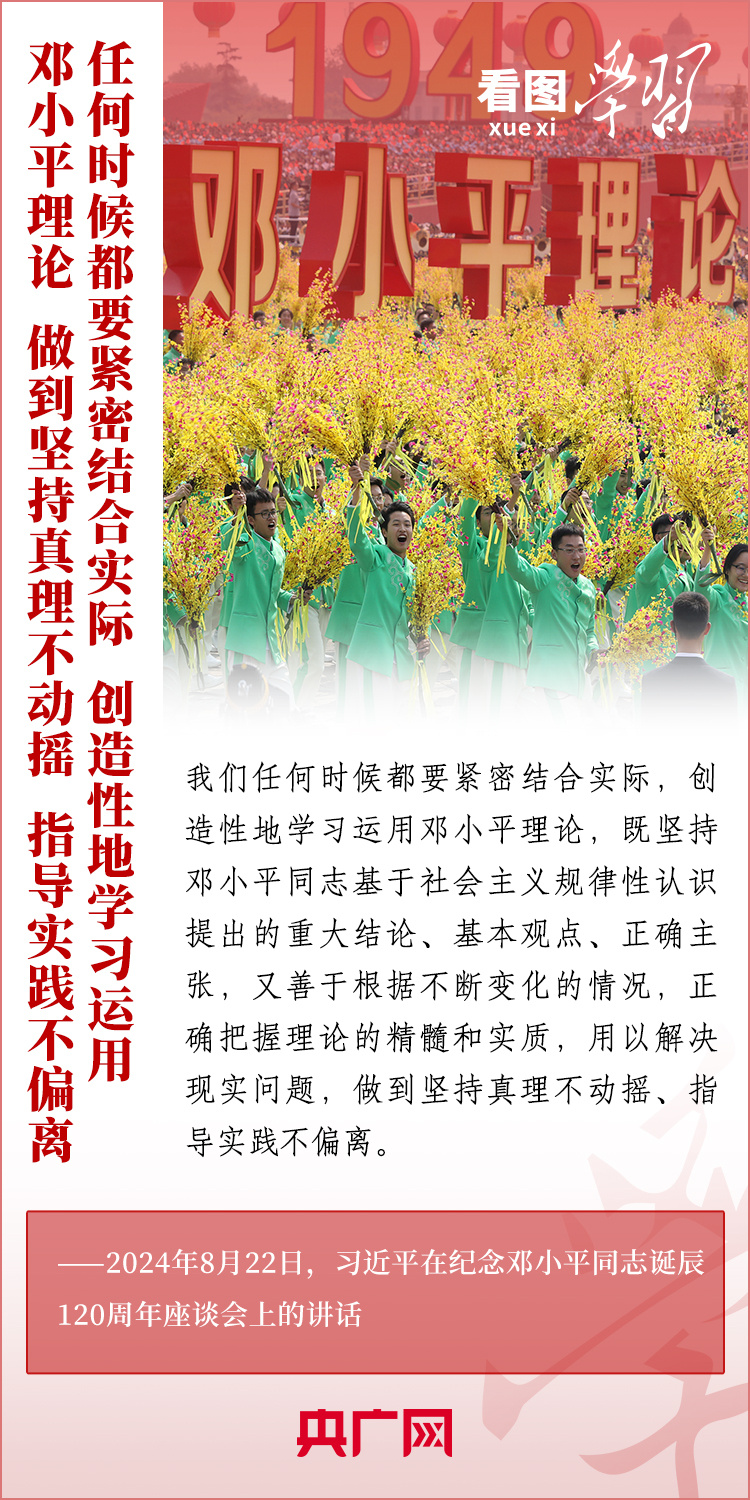 8月22日,習(xí)近平總書(shū)記在紀(jì)念鄧小平同志誕辰120周年座談會(huì)上發(fā)表重要講話指出,鄧小平同志的歷史功勛是全方位的、開(kāi)創(chuàng)性的,對(duì)中國(guó)和世界的影響是深刻的、長(zhǎng)遠(yuǎn)的??倳?shū)記強(qiáng)調(diào),對(duì)鄧小平同志最好的紀(jì)念,就是把他開(kāi)創(chuàng)的中國(guó)特色社會(huì)主義事業(yè)繼續(xù)推向前進(jìn)。我們要緊緊圍繞以中國(guó)式現(xiàn)代化全面推進(jìn)強(qiáng)國(guó)建設(shè)、民族復(fù)興偉業(yè)這個(gè)中心任務(wù),繼往開(kāi)來(lái),奮發(fā)進(jìn)取。一起來(lái)學(xué)習(xí)!