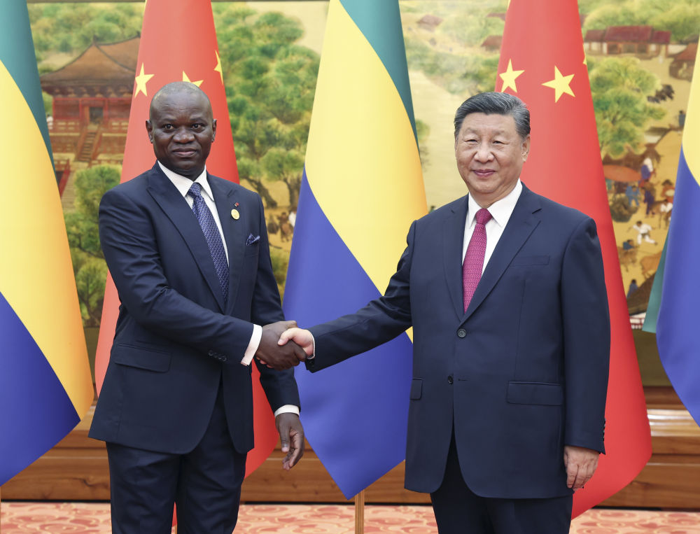 9月4日下午,國家主席習近平在北京人民大會堂會見來華出席中非合作論壇北京峰會的加蓬總統(tǒng)恩圭馬。