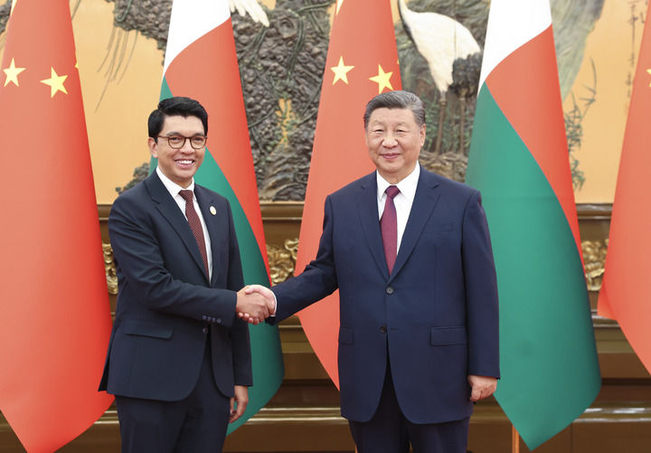 9月6日下午,國家主席習(xí)近平在北京人民大會堂會見來華出席中非合作論壇北京峰會的馬達(dá)加斯加總統(tǒng)拉喬利納。兩國元首宣布,將中馬關(guān)系提升為全面戰(zhàn)略合作伙伴關(guān)系。