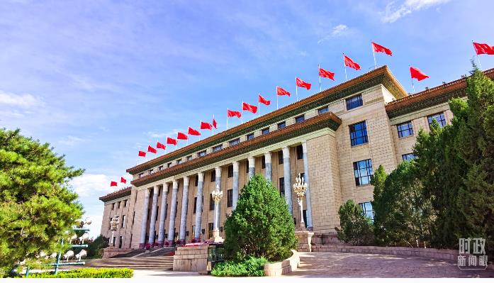 人民大會(huì)堂擺放的旗陣。(總臺(tái)央視記者馬超拍攝)