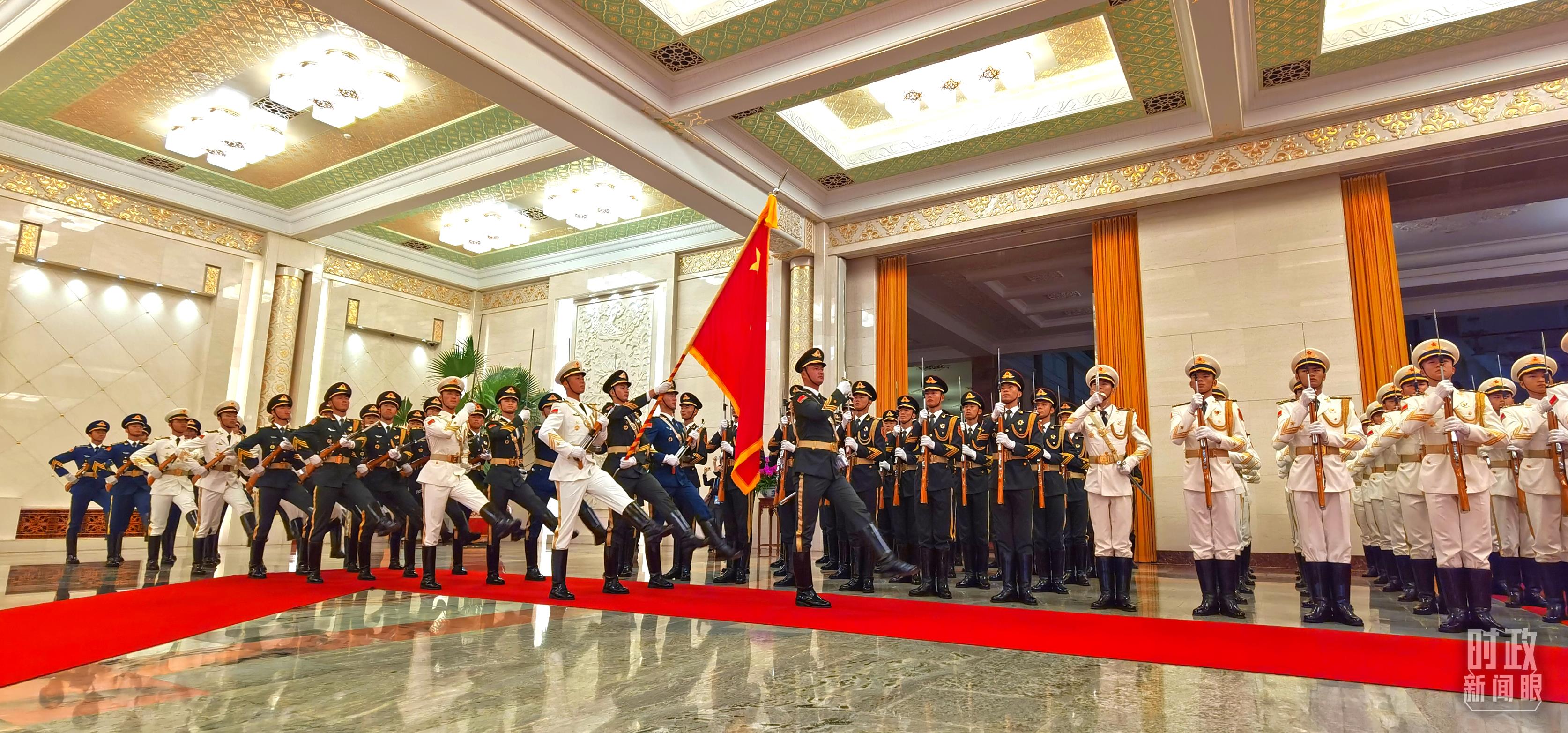 禮兵列隊(duì)迎接外賓。(總臺(tái)央視記者鐘銳拍攝)