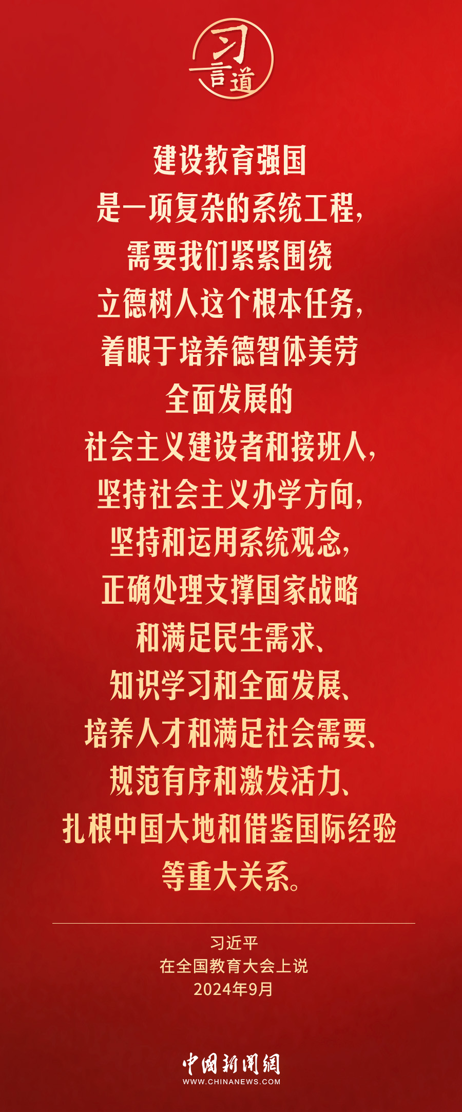 全國教育大會9日至10日在北京召開。中共中央總書記、國家主席、中央軍委主席習(xí)近平出席大會并發(fā)表重要講話。習(xí)近平指出——