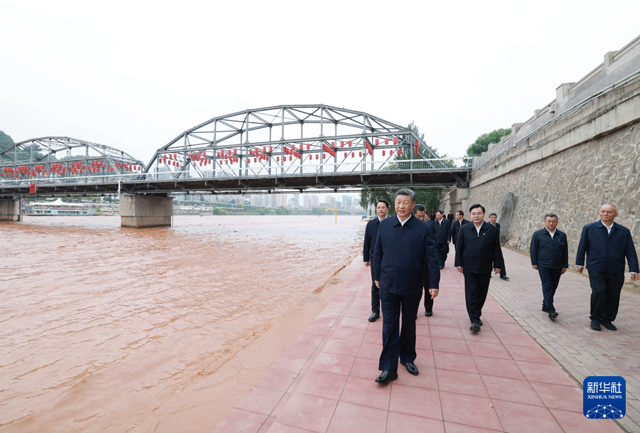 9月10日至13日,中共中央總書記、國家主席、中央軍委主席習近平在甘肅考察。這是11日下午,習近平在黃河蘭州中山橋段考察。新華社記者 鞠鵬 攝