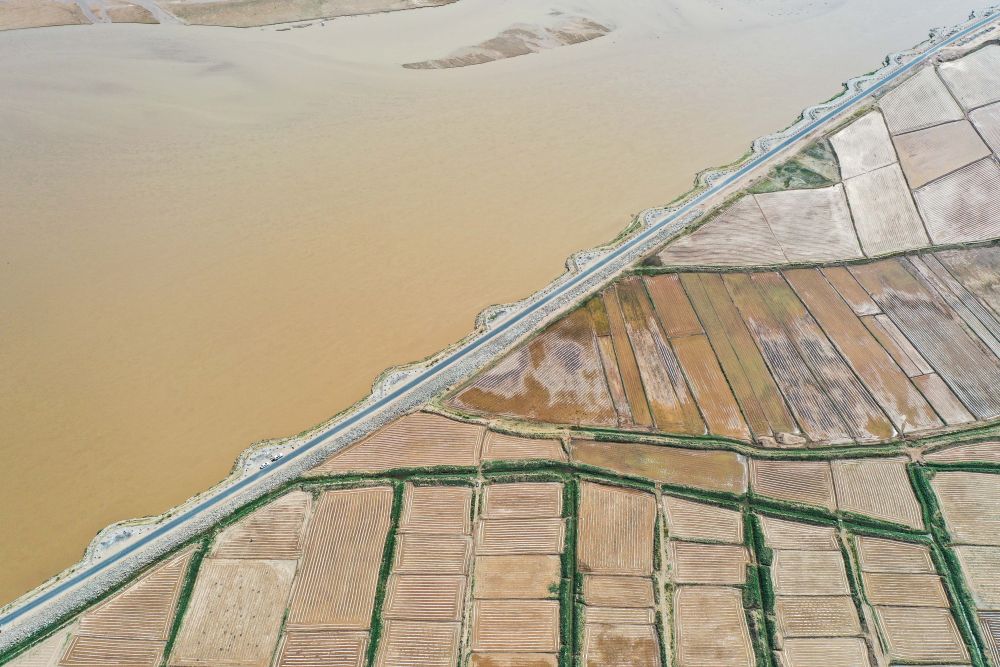 2024年5月9日在陜西省寶雞市拍攝的黃河最大支流渭河沿岸景色(無人機(jī)照片)。